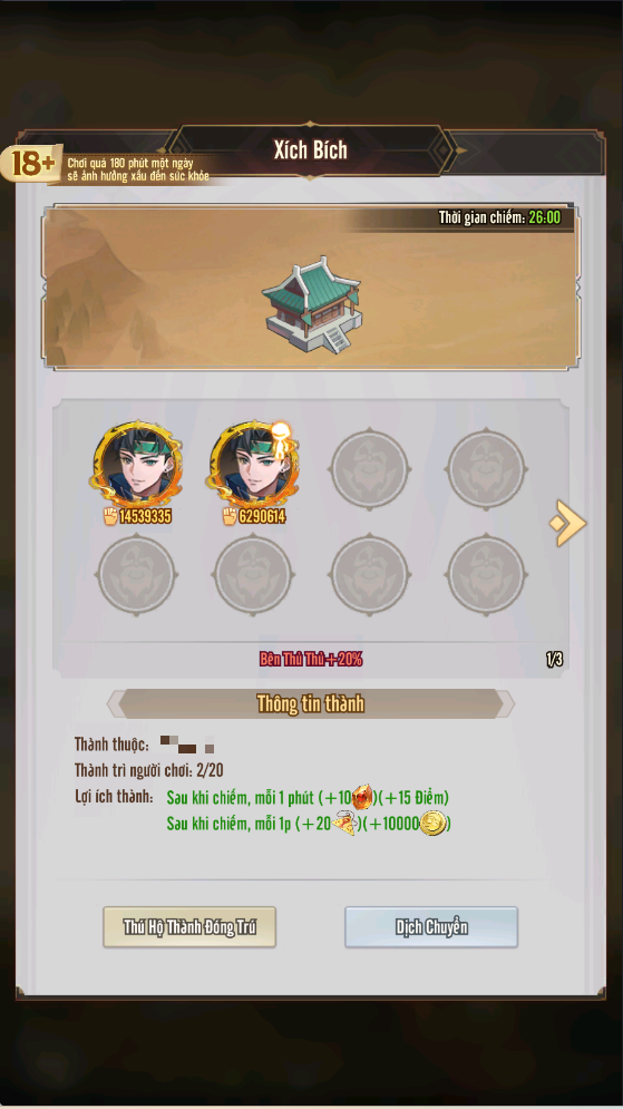 Nếu thành không còn người trấn thủ, phe tấn công sẽ chiếm lĩnh thành trì đó.