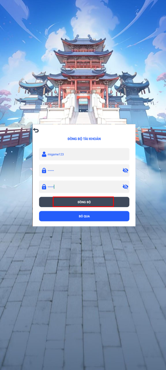 - Bước 3: Hệ thống sẽ hiển thị bảng thông tin đồng bộ tài khoản. Nhập thông tin tài khoản muốn đặt và nhấn Đồng bộ để xác nhận.