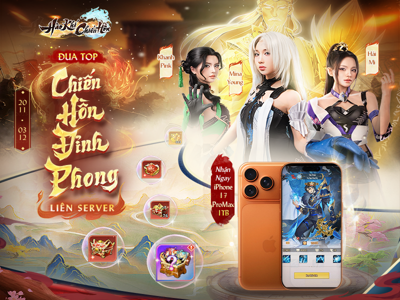 Chinh phục bảng xếp hạng, bứt phá lực chiến tìm ra chủ nhân của chiếc IPhone 17 Pro Max 1TB và thêm nhiều phần thưởng ingame cực giá trị.