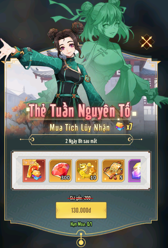 + Thẻ Tuần Nguyên Tố: Kích hoạt gói quà 1 lần, nhận Tinh Thể Ngũ Sắc, chiêu mộ nguyên tố mỗi ngày trong vòng 1 tuần.