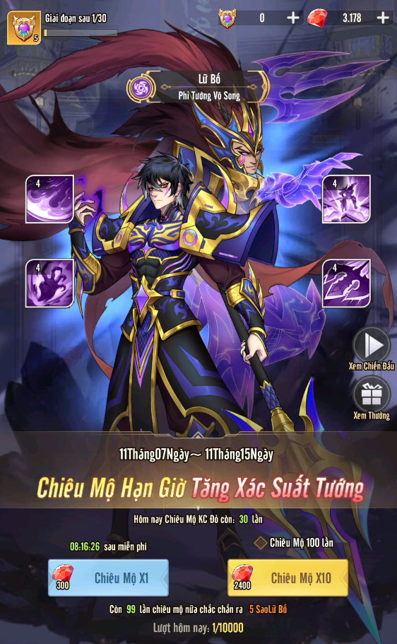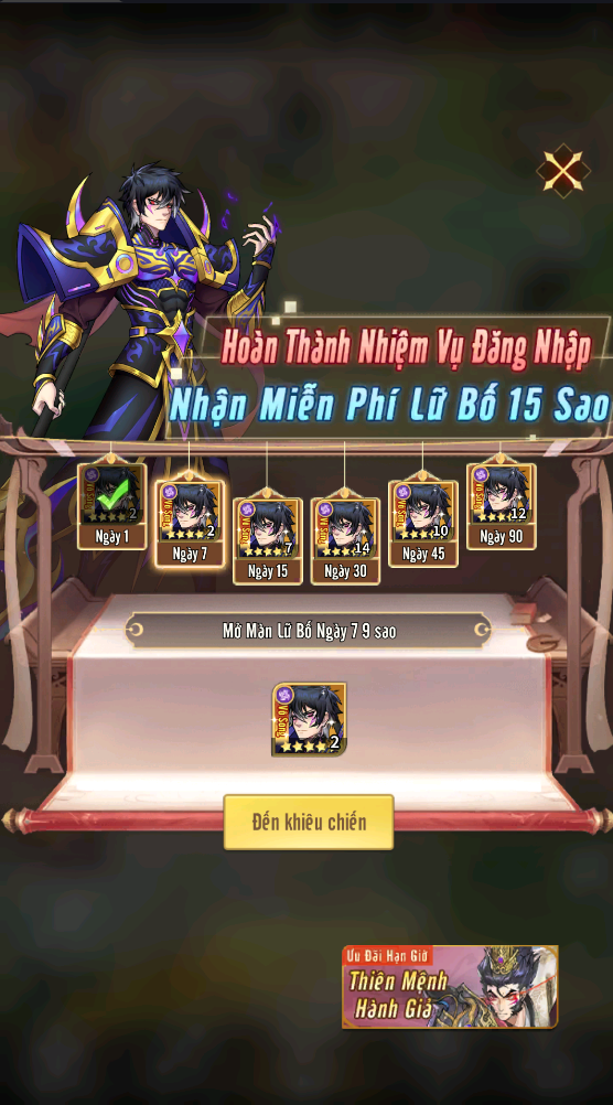 - Đăng Nhập Nhận Lữ Bố 15 Sao.