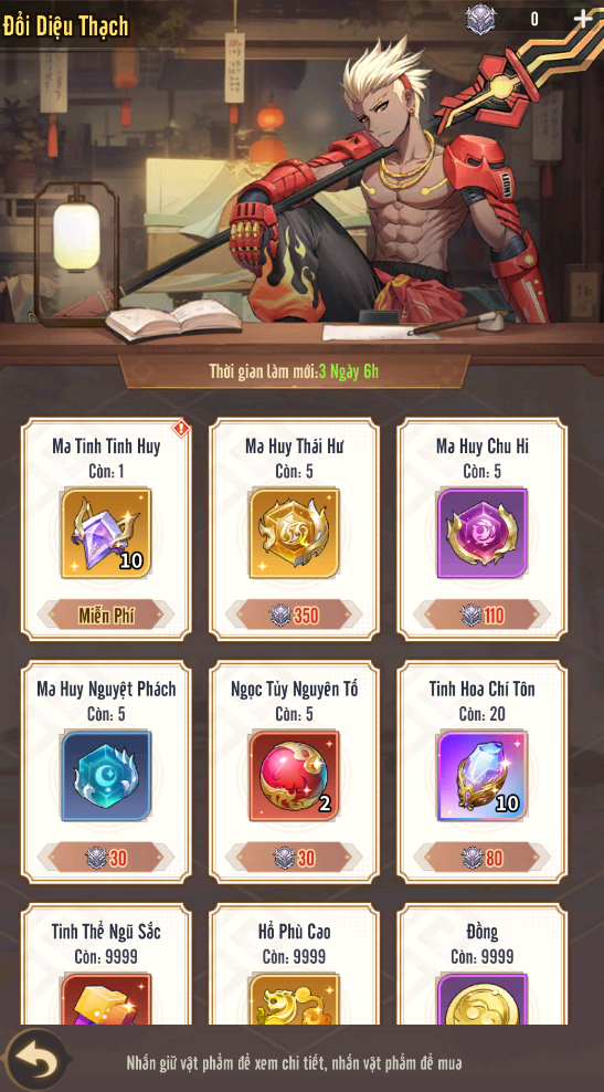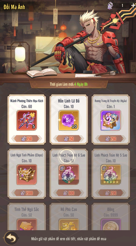 + Đổi Ma Ảnh: mỗi lượt chiêu mộ Lữ Bố trong Bóng Ảnh Vô Địch, Điều Tra Viên sẽ nhận được 1 Lệnh Ma Ảnh. Có thể dùng Lệnh Ma Ảnh vào tiệm Ma Ảnh để tiến hành trao đổi lấy các vật phẩm giá trị khác tùy theo nhu cầu.