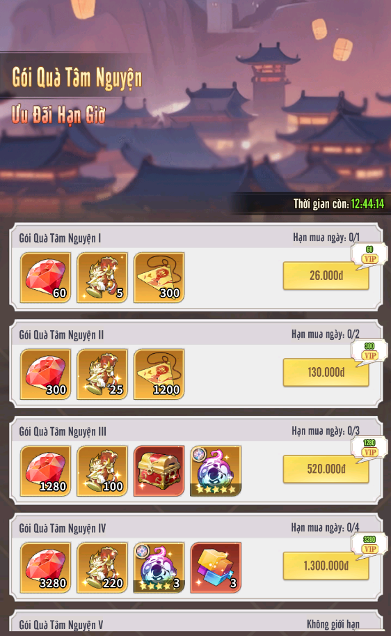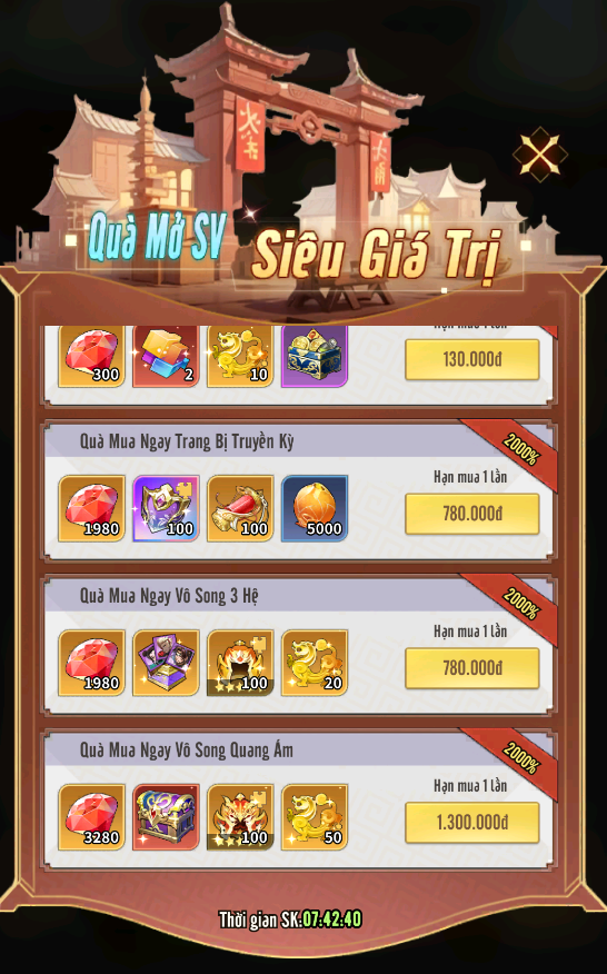 Lưu ý: sự kiện chỉ mở ra ở ngày đầu tiên mở server, nếu không mua thì qua ngày thứ 2 sự kiện sẽ không xuất hiện lại, các Điều Tra Viên xin lưu ý.