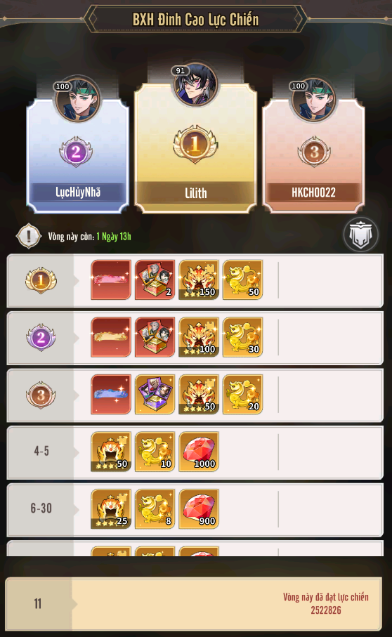- Đỉnh Cao Lực Chiến, BXH Lực Chiến.