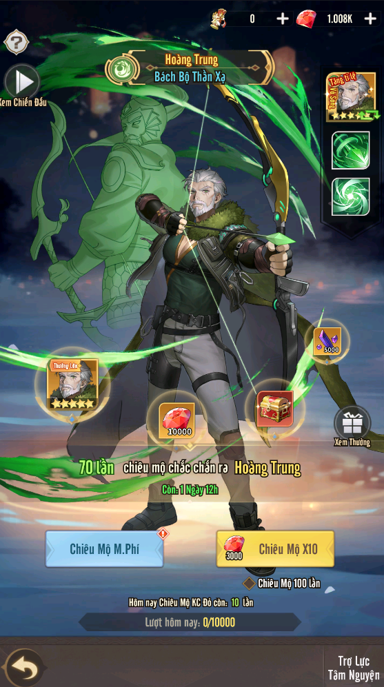 - Nạp đầu nhận tướng Vô Song Trương Phi 10 sao.