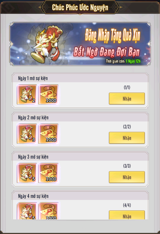 + Ngày 2 nhận 50 Hồn Linh Trương Phi và 50 Hổ Phù Cao.