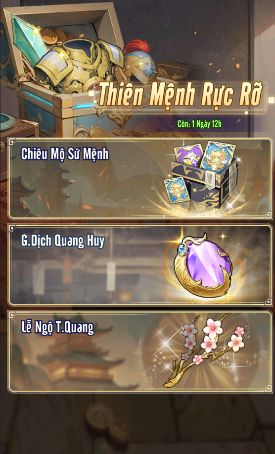 Bộ sự kiện Thiên Mệnh Rực Rỡ kéo dài từ ngày 3 đến ngày 7 của server mới, bao gồm nhiều hoạt động: