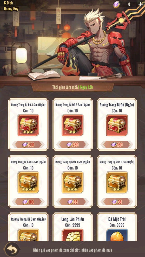 + Ngày 2 nhận Vũ Khí và Giáp đỏ 1 sao.