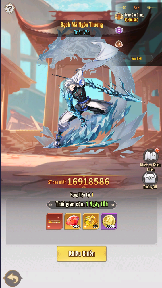 + Ngày 1 nhận võ tướng Vô Song Trương Phi 5 sao và tài nguyên nâng lên cấp 50.