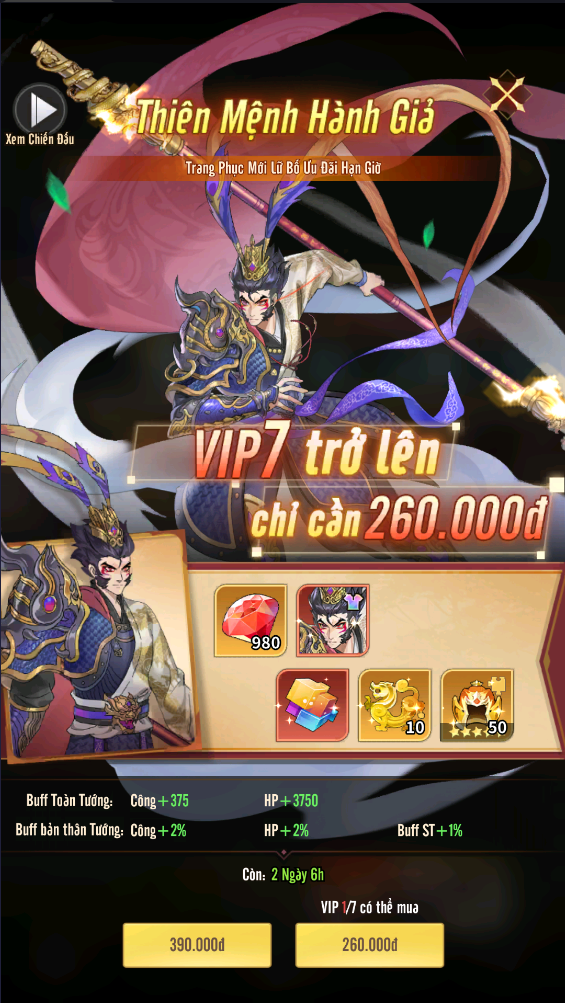 Mốc 260.000đ: nhận Trương Phi 10 sao.
