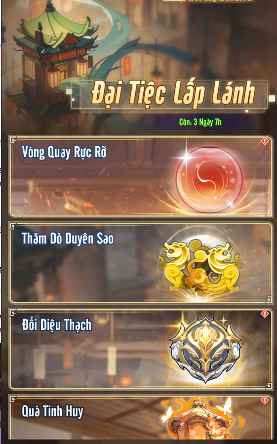 Bộ sự kiện Đại Tiệc Lấp Lánh kéo dài từ ngày 1 đến ngày 4 của server mới, bao gồm nhiều hoạt động: