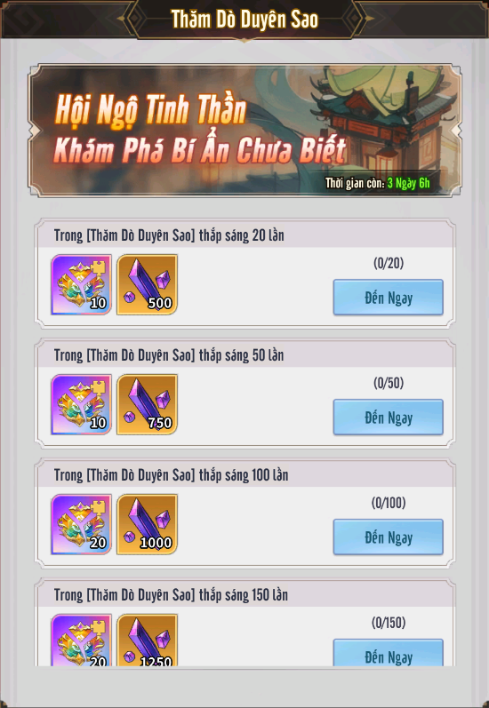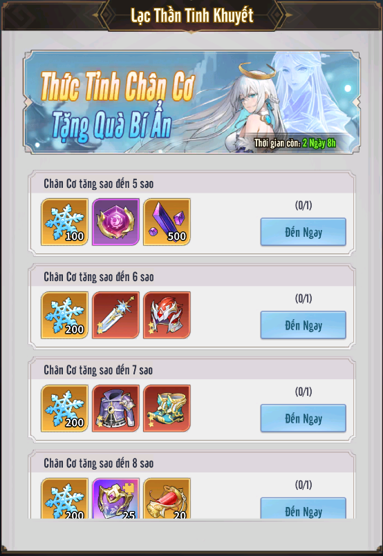 + Lạc Thần Tinh Khuyết: tăng sao Chân Cơ đến các mốc nhất định để nhận những phần thưởng giá trị.